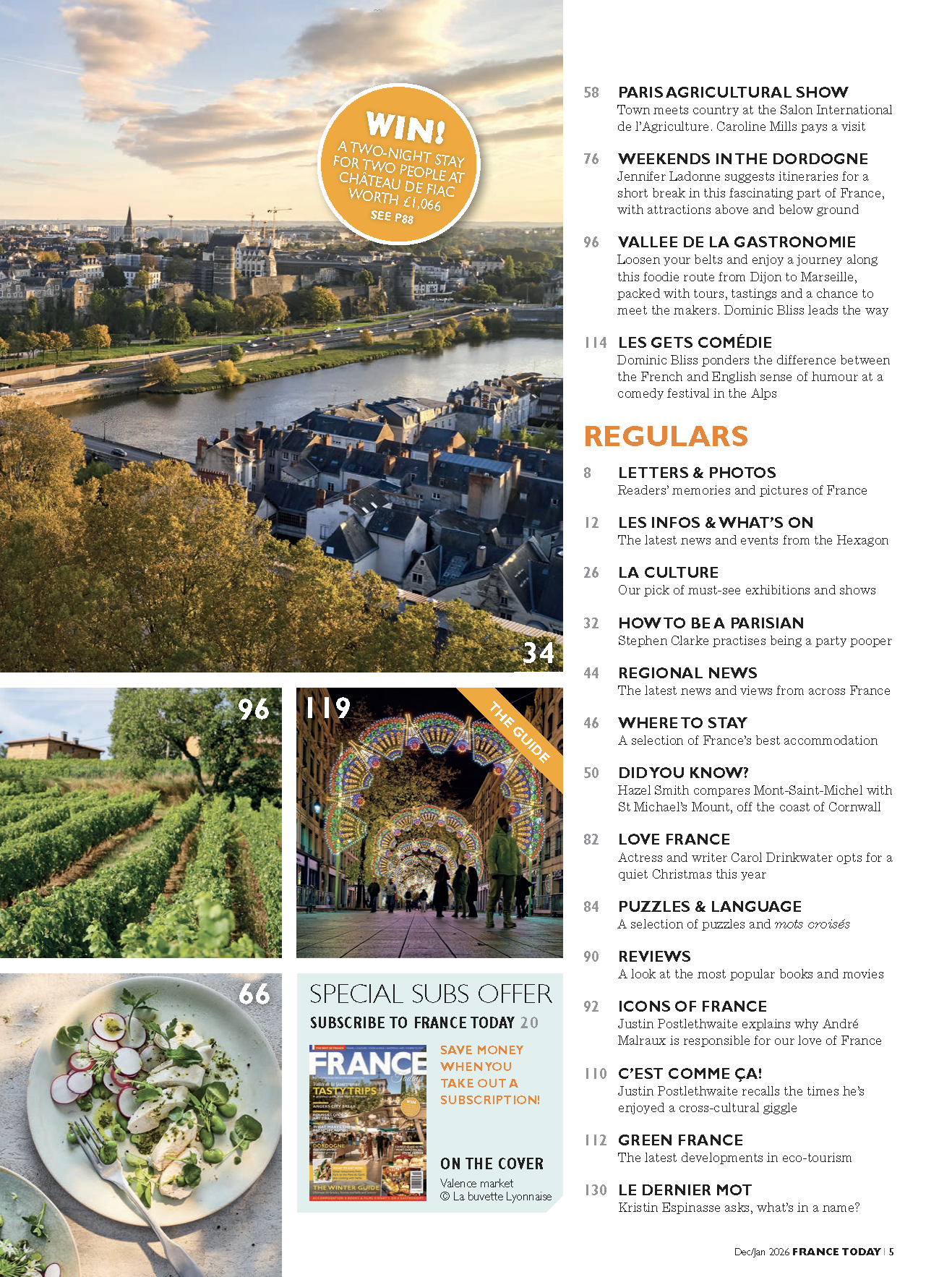 This issue of France Today is a celebration of everything that makes la belle France so irresistible. From the snow-dusted peaks of the Alps to the sunlit coasts of Corsica, it’s packed with inspiration for your next adventure. Wine lovers will be drawn to dreamy vineyard stays near Bordeaux, while foodies can savour the rich flavours of the Southwest. History buffs can walk the haunting remembrance trails of northern France or unravel the mysteries of the country’s Black Madonnas. Pop culture fans will delight in behind-the-scenes secrets of the dazzling new Marie Antoinette TV series, and classic film lovers will enjoy features on comedy legend Louis de Funès and cinema giant Luc Besson. Add in chic shopping tips, delicious recipes, cultural events, and must-see exhibitions, and you’ve got a magazine that feels like a love letter to France in autumn.