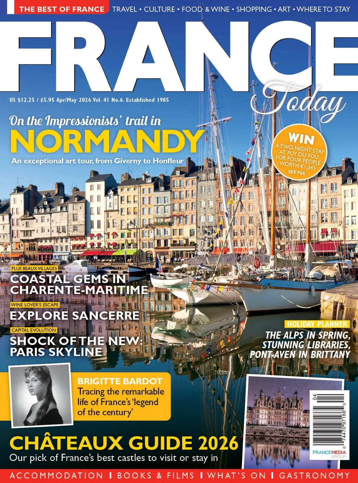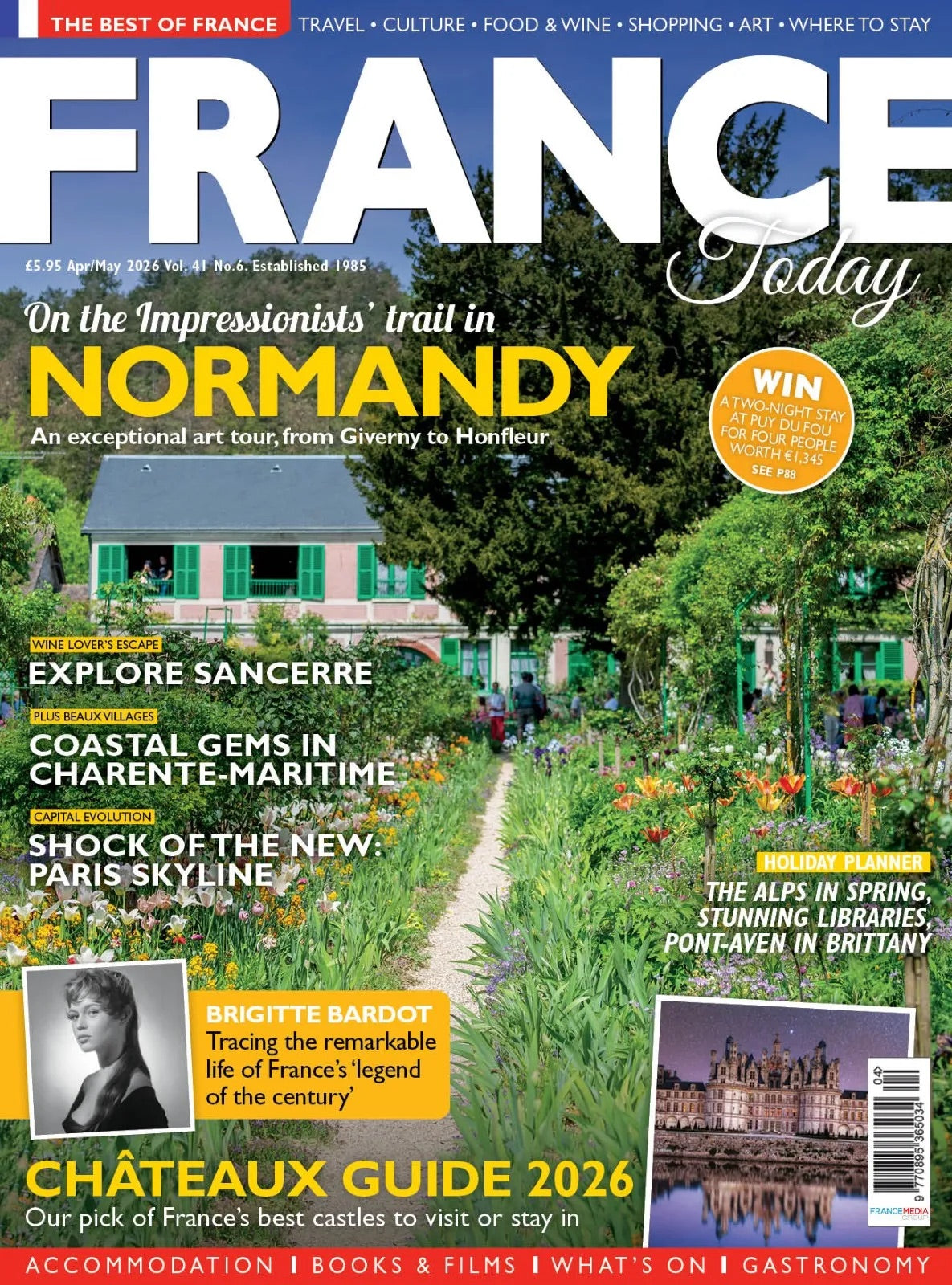 This issue of France Today is a celebration of art and art de vivre — the quintessentially French pursuit of beauty, pleasure and the finer things in life. We explore Normandy's Impressionist landscapes, the artistic villages of Charente-Maritime and Brittany's Pont-Aven, alongside the Alpine retreat of Saint-Gervais-les-Bains, perfect for shoulder-season travellers seeking tranquillity and stunning scenery. Wine lovers will be drawn to Sancerre, while culture seekers can discover France's finest libraries and the ever-evolving Parisian skyline. We also pay tribute to Brigitte Bardot and the iconic can-can, and guide you through the best châteaux to visit or stay in. Bon appétit — there's something here for every Francophile.