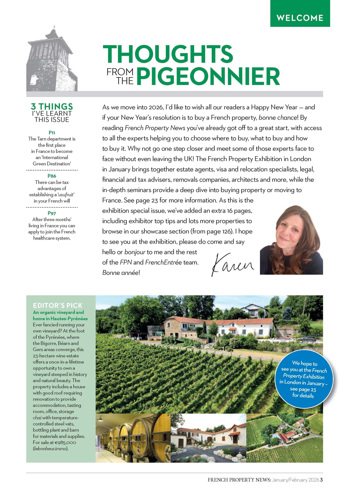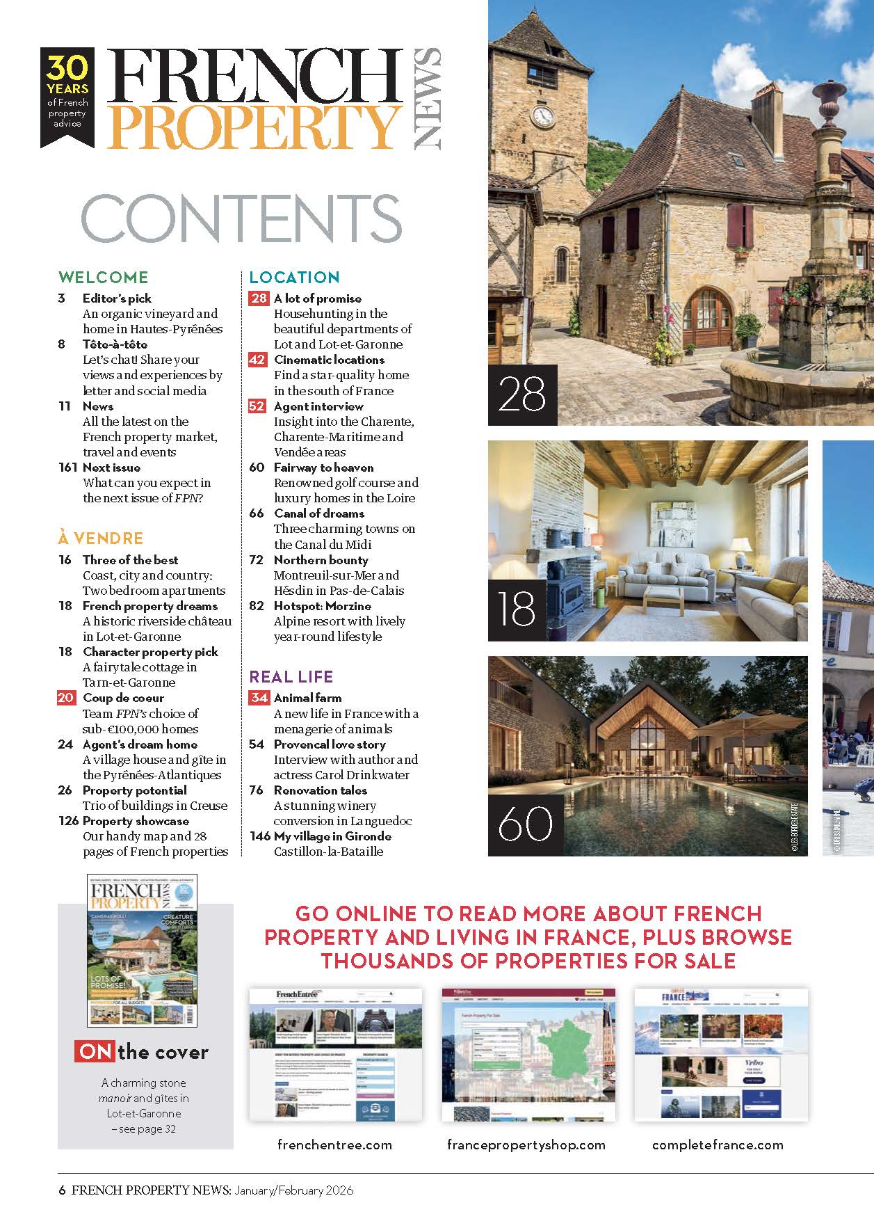 Dreaming of a life in France? The latest issue of French Property News is your perfect winter read — packed with expert advice, regional inspiration, and real-life stories of people who’ve made the move. Discover what’s new in the French property market, from sun-drenched Provençal farmhouses to character cottages in Normandy. Learn how to navigate inheritance laws, energy rules, and the changing landscape of residency and visas post-Brexit. Step inside beautifully restored homes that balance tradition with modern comfort, and get insider tips from notaires, agents, and expats who’ve built their dream lives in France. Whether you’re ready to buy or just beginning to explore, this issue blends expertise with inspiration — helping you turn that “someday” dream into a real French address.